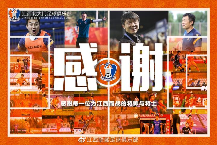 5月19日,中甲江西北大门官方以“感谢”为主题,发布文章《祝福 | 聚散离合终有时 感谢你们为江西北大门的付出》,为新赛季离队的教练员、球员送上深情祝福。