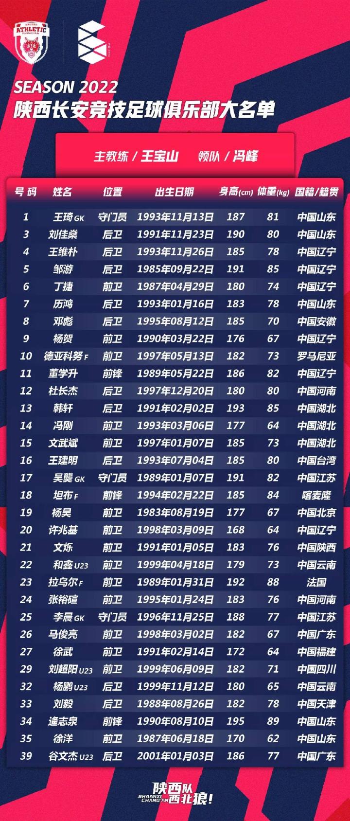 陕西长安竞技新赛季大名单:德亚科努10号,第三外援拉乌尔