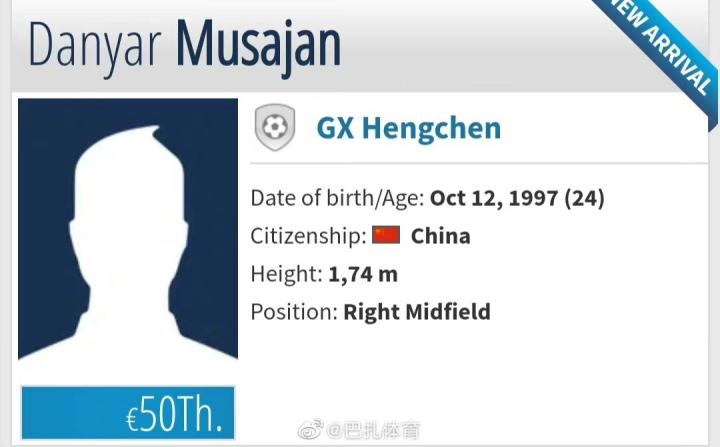 德转:前新疆天山雪豹球员达尼亚尔加盟中冠新军广西恒宸