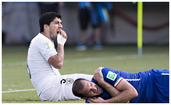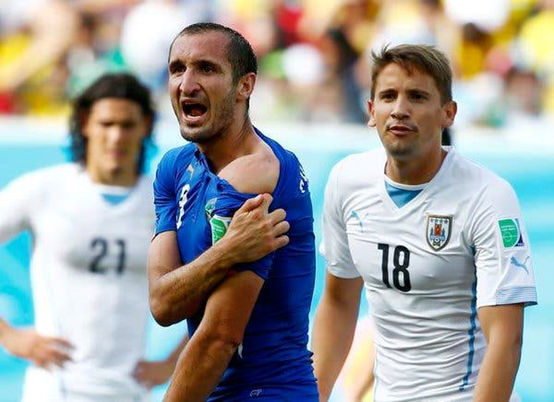 末轮与乌拉圭的比赛,苏亚雷斯禁区内咬中基耶利尼肩膀更是震惊世人,成为当年世界足坛热议的事件。