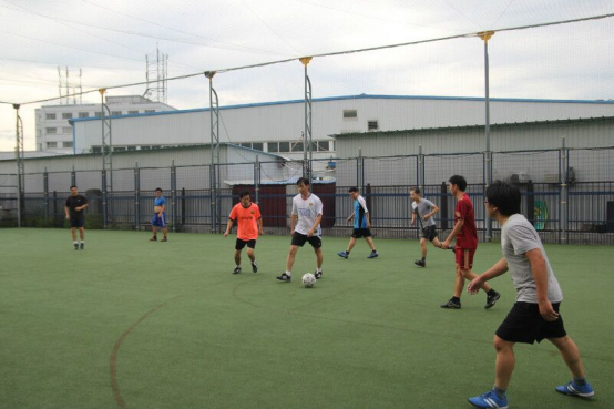 不名说:他有时候周末会跟几个同事在停车场踢踢球。