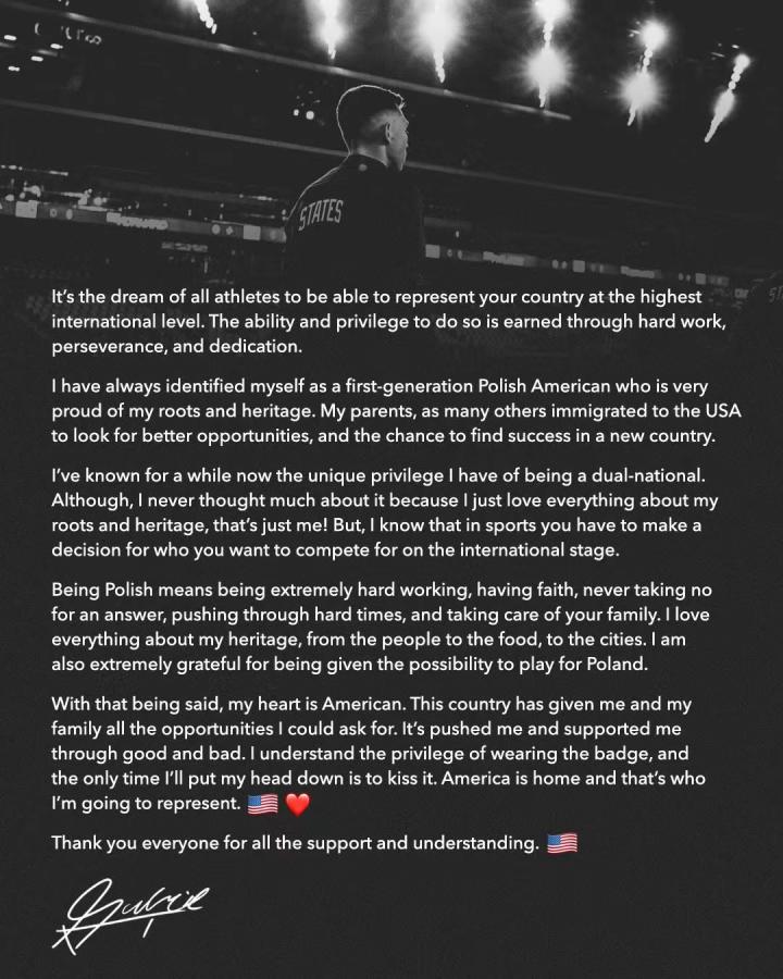 现在,这名拥有双重国籍的门将对自己的未来做出了决定,他不会前往波兰国家队报到,将在往后的职业生涯中为美国效力。