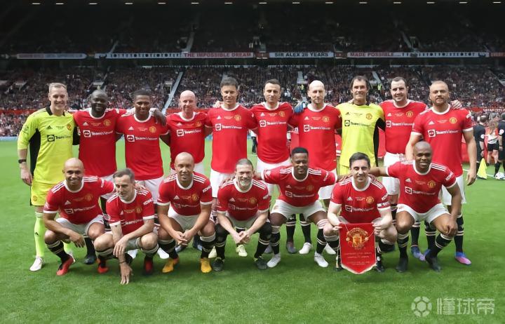 曼联传奇队首发:范德古、加里-内维尔、斯塔姆、约翰森、埃弗拉、波博斯基、瓦伦西亚、巴特、布鲁姆奎斯特、萨哈、贝尔巴托夫