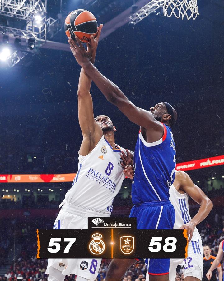 皇马男篮57-58不敌艾菲斯,无缘获得欧冠冠军LaPulga2022-05-22 02:49皇马男篮57-58不敌艾菲斯,无缘获得欧冠冠军。在北京时间5月22日凌晨进行的男篮欧冠决赛中,皇马57-58不敌艾菲斯,无缘获得队史第11座欧冠冠军奖杯。在此前的半决赛,皇马男篮曾击败了巴萨男篮,欧冠决赛中他们也一度一直领先,但最终以1分之差遗憾负于对手。展开更多