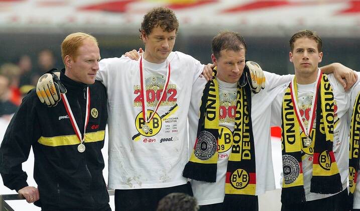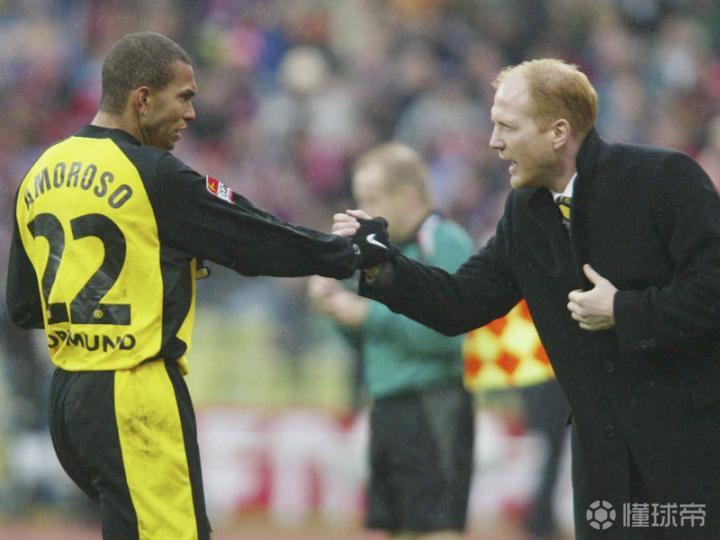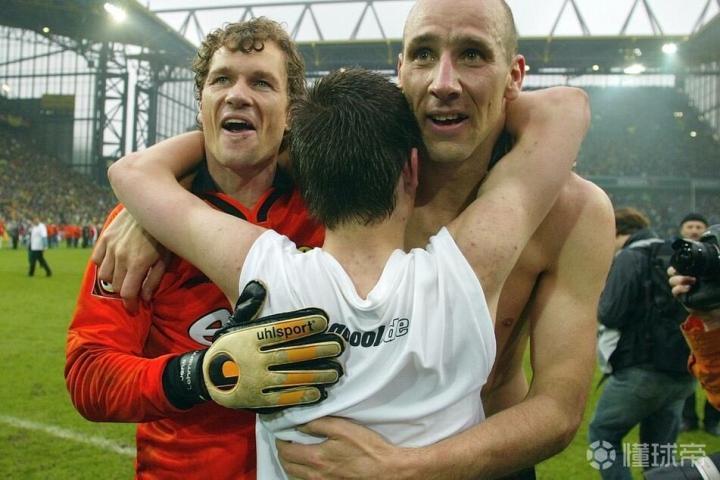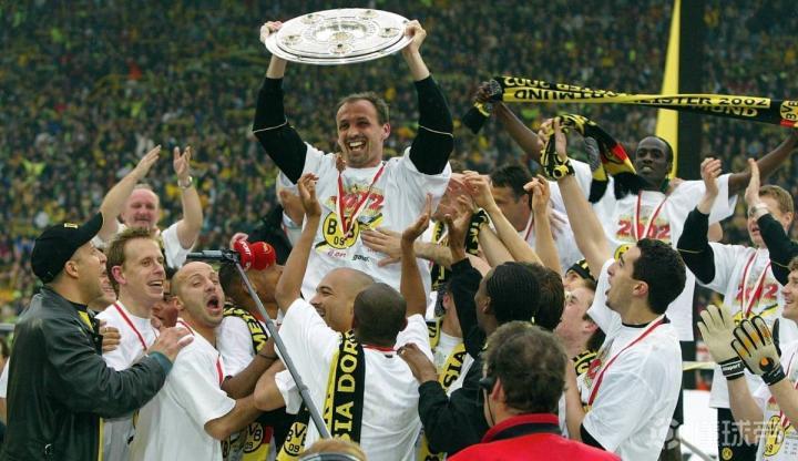 2001/02赛季德甲联赛多特蒙德最后两轮完成逆袭,在功勋萨默尔的带领下大黄蜂队史第6次举起德甲冠军盾牌,那年多特蒙德锋线可是人才济济,各种风格迥异,身高2米的捷克高佬扬科勒,还有当年花了大黄蜂2550万欧元最终拿下德甲小钢炮的大杀星阿莫鲁索,中场是捷克名将罗西基,还有尼日利亚铁腰奥利塞赫,少年成名的拉斯里肯等,后场大名鼎鼎科勒尔,罗伊特,海因里希,梅策尔德等,还有已经证明过自己的个性门将莱曼,当然,这年德甲末轮替换上场已经宣布退役的科勒尔在夺冠庆典后恫哭的场景让人泪目。 除去多特蒙德自身的坚强不息,而他们的主要竞争对手勒沃库森那年只能用一个字来形容,那就是“惨”,联赛倒数最后两轮被多特蒙德逆转,德国杯决赛被沙尔克痛击,欧冠决赛遭遇齐达内的天外飞仙,到头来竹篮打水一场空而已,悲情与悲哀莫过于此。