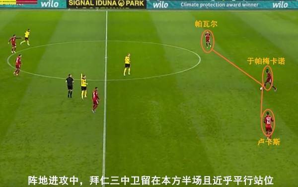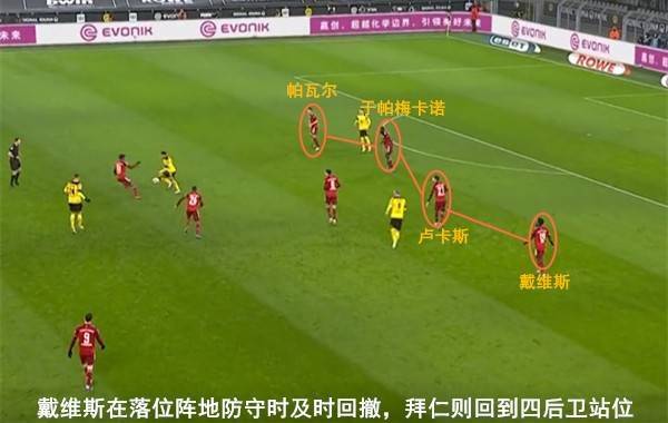 身为瓜迪奥拉信徒、图赫尔弟子,纳格尔斯曼怎能在拜仁萧规曹随?于是在不俗开局后,天马行空的新帅开始变阵——他设计了一套介于三中卫和四后卫之间的“假三中卫(3.5后卫)体系”。主要变量在于阵地进攻的边卫属性,即左路的戴维斯化身翼卫,右路放弃助攻的帕瓦尔和卢卡斯、于帕梅卡诺平行站位,进而形成防守4231落位,进攻3241体系的布局。
