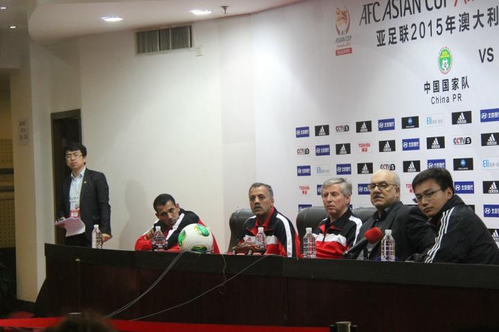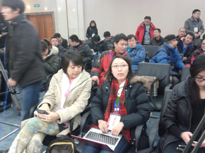 赛后新闻发布会上等待参赛两队主教练的记者们
