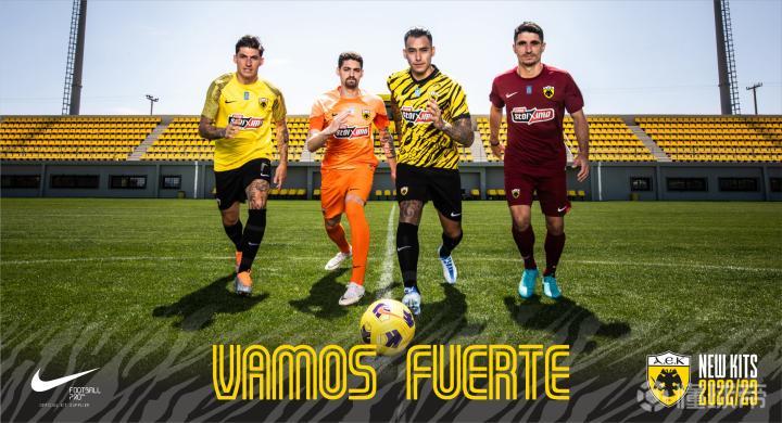 雅典AEK发布2022-23赛季主客和守门员球衣。