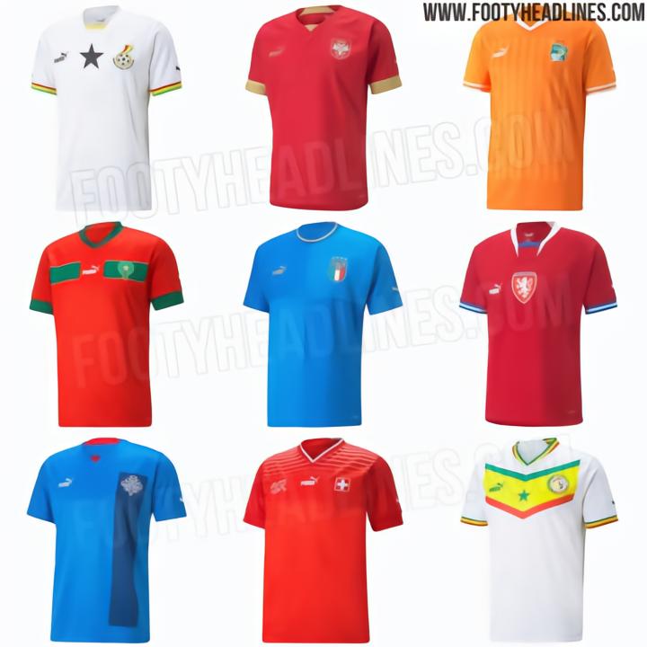 FootyHeadlines网站近日曝光了Puma旗下各大国家及代表队2022年的全新主场球衣,其中包括塞尔维亚、塞内加尔、摩洛哥、乌拉圭、瑞士、加纳、奥地利这七支球队的世界杯球衣。