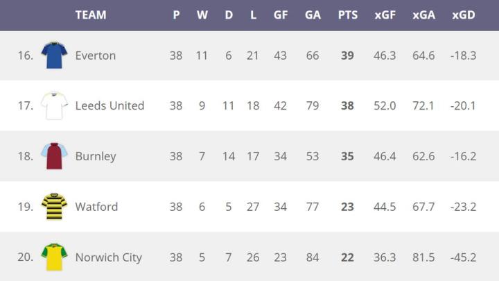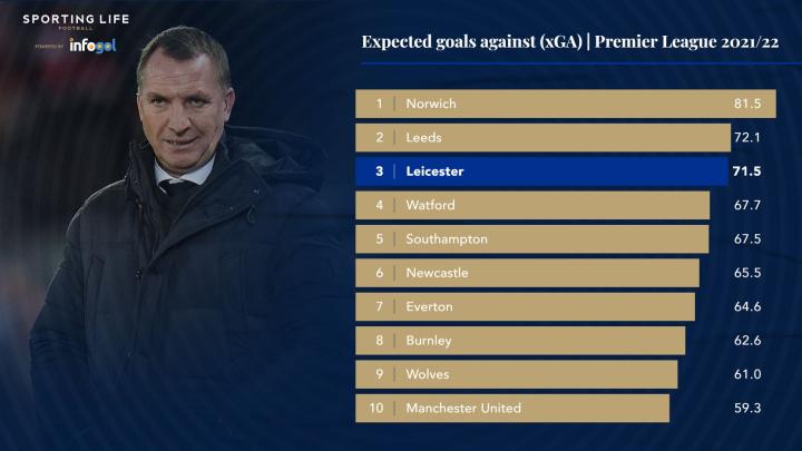 只有诺维奇和利兹联比罗杰斯的球队失球更多,后者在这个艰难的赛季中创造了71.5的预期失球数据。