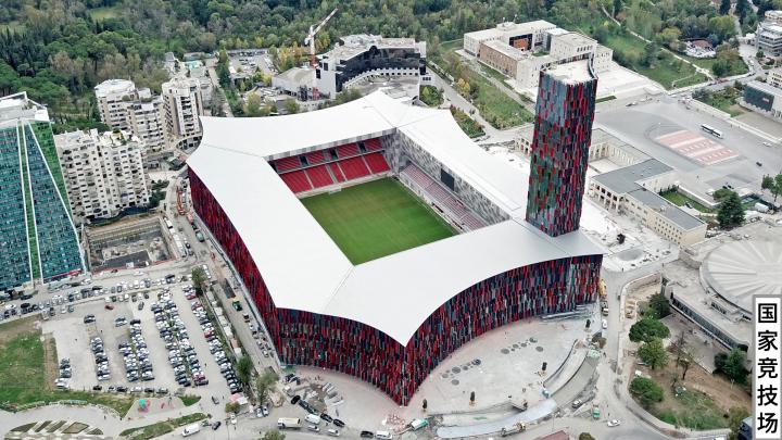 首先要说的是,科姆伯塔雷的意思是“国家的”,所以这座体育场又可以意译为“国家竞技场”;同时因为赞助商冠名的缘故,它又被称为阿尔巴尼亚航空体育场(Air Albania Stadium),为了讲述的一致性,我在后面会统一称之为国家竞技场。
