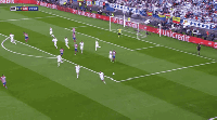 第92分钟,皇家马德里获得角球机会,莫德里奇开出的角球弧线、力度、位置俱佳,拉莫斯点球点高高跃起,甩头攻门,皮球门前弹地后窜入死角,皇家马德里扳平比分。可以说拉莫斯此时的进球,使得皇家马德里把士气,心态和信念的优势都牢牢抓在手里。