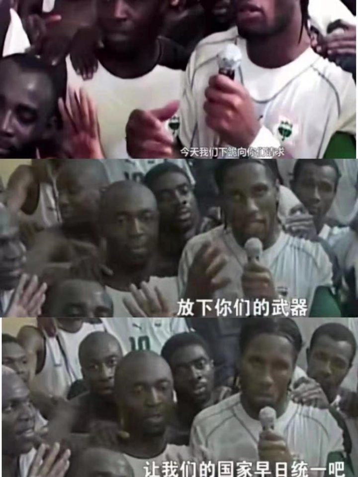 从2002年开始,科特迪瓦就陷入内乱,反对派和中央政府的武装冲突持续不断,到2005年,国家已经走向分裂的边缘。也是在这一年,2006年世界杯非洲区预选赛如火如荼,魔兽率领的科特迪瓦队表现出色,德罗巴发现,每当国家队取得胜利之时,无论是政府还是反对派,以及他们的支持者,都会欢欣鼓舞走上街头庆祝,似乎,足球可以让这个国家重新凝聚在一起。于是,在预选赛最后一轮科特迪瓦获得世界杯入场券后,德罗巴带领队友开始行动,他们集体跪地向冲突双方喊话,号召放下武器,德罗巴简短的演讲,在科特迪瓦电视台反复播放,如此感召之下,奇迹发生了,战争双方后来选择了停战和解,德罗巴从球场上的英雄升级为民族英雄。