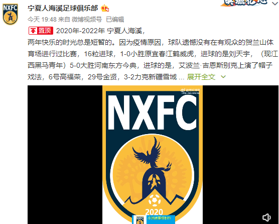 不过,宁夏人海溪在悲情告别的同时,也给球迷留下一丝希望。因为就在发文告别20分钟之后,他们又发布了一条简短有力的一句话消息:你好!宁夏人方众足球俱乐部。或许,这意味着俱乐部将更名,重新开始新的绿茵征程。