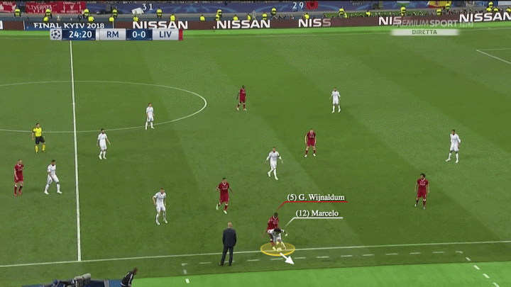 这是一个在当时看来似乎无伤大雅的小事,它可能源于第25分钟使利物浦获利的一个误判。马塞洛和维纳尔杜姆在利物浦的右路缠斗,大约在皇马半场的三分之一处。球似乎是打在维纳尔杜姆的身上出了界,边裁示意是皇马的界外球,但这一决定被主裁判推翻了。