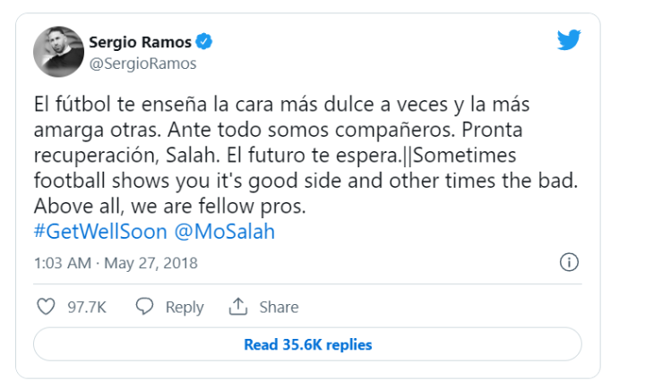 不过,拉莫斯赛后的推特应该还是安慰到了萨拉赫。