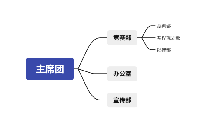 竞赛部:负责赛事策划、赛程安排、裁判培训、指派以及比赛秩序维护。