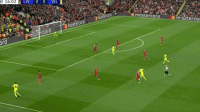 这次蒂亚戈左侧突然横穿中路时迪亚斯和马内都进行了回撤但是黄潜的两个中卫都没有跟紧。马内快速转移到右路,萨拉赫直塞给边路套上的队友。这一系列操作很像17年决赛皇马进尤文第一球。当亨德森接到球时,黄潜两个中卫都迅速前提了一步打算造越位。但当时因为边后卫的回追已经没有造越位的机会了。这也导致他们的身位落后与利物浦的抢点球员。即使没有折射远点迪亚斯也能射空门。