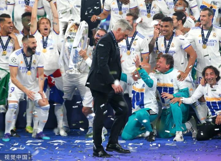 昨天凌晨,这支在赛前说说笑笑的团队,捧起了俱乐部历史上第14座欧冠奖杯,也是安切洛蒂本人的第4座——毫无疑问,这独一份的职业殊荣,再次让安切洛蒂载入史册。