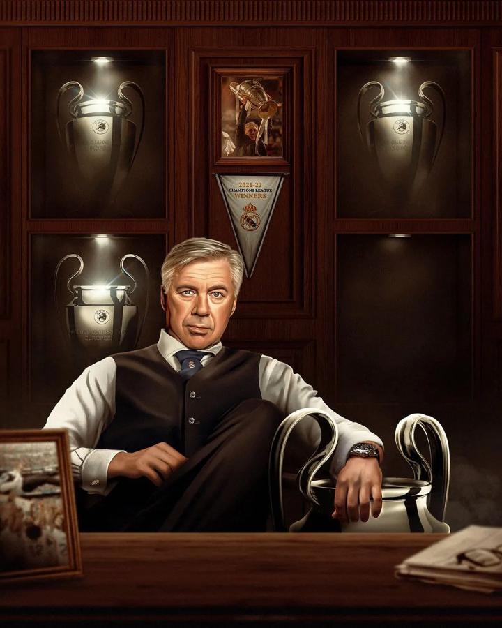 与曼城的欧冠半决赛首回合,就是安切洛蒂施展魔力的最好体现。 曼城早早在主场取得两球领先,但瓜迪奥拉却依然在场边坐立不安,冲着场上张牙舞爪;反倒是落后的安切洛蒂,双手交叉于胸前,一副泰然自若的表情——这是他平日里为人处世最自然的反应,也基于他对麾下球员的充分信任。他明白,比分并不能反映比赛的真相。他深知,在一个紧张的欧冠淘汰赛之夜,最重要的品质是沉稳和专注。而这,正是皇马总能在逆境中翻盘的底气。