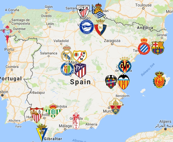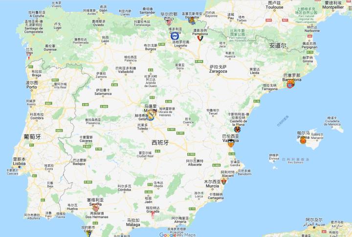 最后附上一张西班牙俱乐部地图,你能认清地图中包含的所有俱乐部吗?