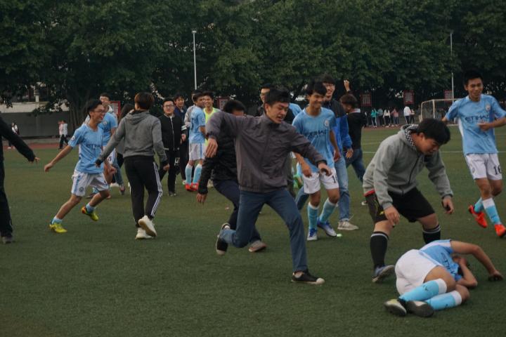 校内参与足球运动的人有着不同的身份:学校领导、专业老师、学生会会长、奖学金得主、班级干部...但是只要穿上球鞋踏上球场,他们就只有同一个身份——球员。