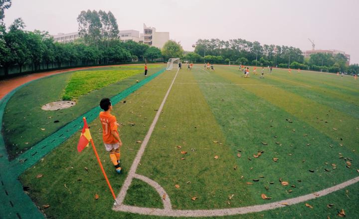 足球场建在校门隔壁,抬头便可以看到14号线地铁的站台,隔着墙可以听到广从南路的车来车往。20年来,一批又一批人带着青涩进来,带着感动和思念离开。而这个足球场,承载着许多广软足球人纯粹的大学足球记忆。