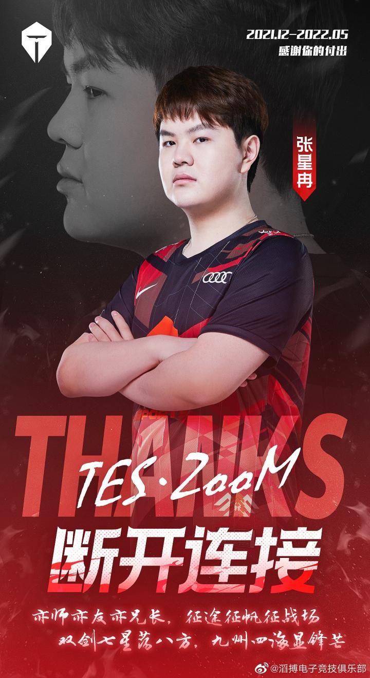 滔搏电子竞技俱乐部人员变动公告:经与UP及选手本人的友好协商,原滔搏电子竞技俱乐部英雄联盟分部上单选手张星冉(ID:Zoom)正式离队,转会至UP英雄联盟分部。