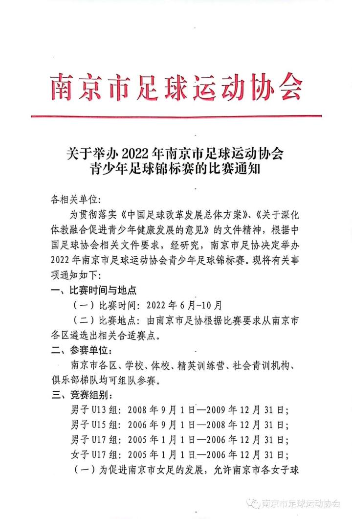关于举办2022年南京市足球运动协会青少年足球锦...青训足球Mark @懂球帝2022-05-31 17:43关于举办2022年南京市足球运动协会青少年足球锦标赛的比赛通知 来源:南京市足球协会展开更多