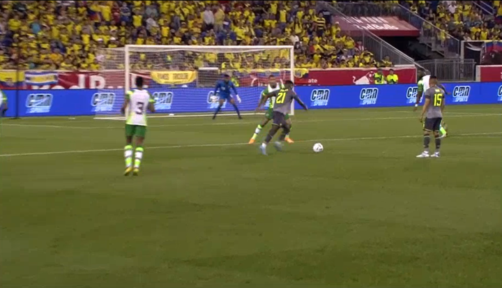 1分钟后,厄瓜多尔后场的传球再出失误,9号德瑟斯断球后直面门将,但他趟球力量过大,亚历山大·多明格斯抢在其射门前下地把球抱住。