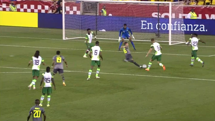 第69分钟,尼日利亚开出角球,丹尼斯的头球攻门顶高了。