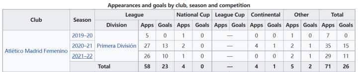 几天后,她在 8-0 战胜玻利维亚的比赛中打进 4 球,总共为一线队出场 25 次打进 12 球。