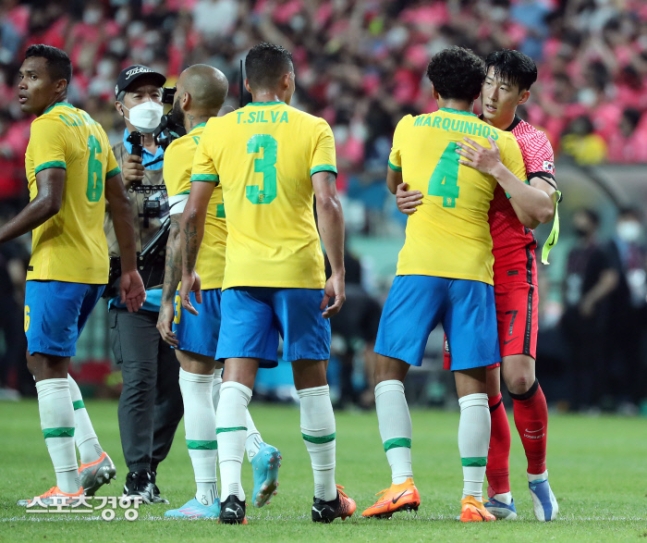 本周,韩国国家队终于迎来了世界杯纪念赛的第一场比赛,对手是巴西国家队。由于双方实力的差距,韩国队最终1-5惨败对手。而这场比赛,也诞生了很多纪录。首先是1986年之后,韩国队单场被对手判点球两次,并造成失球的纪录,时隔36年再度被破;第二个则是失球的纪录。2016年时任韩国队主帅施蒂利克率队曾经在奥地利以1-6的比分惨败过西班牙,而对阵巴西队的比赛,是韩国队时隔6年,再度被对手打入5球以上的纪录。同时,在韩国和巴西的7次交锋纪录中,1-5也是韩国队输得最惨的一次。当然,黄义助的进球,也改写了韩国队近20年热身赛逢巴西队无法进球的纪录。无论如何,对于韩国队来说,这场惨败还是很有锻炼价值的,至少让韩国队看清了目前和世界强队的差距到底有多大。