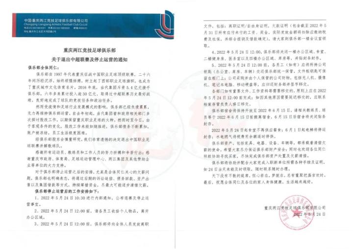 2022年第一支解散的中超球队,比以往来得更晚一些。从天津天海到江苏队,再到如今的重庆两江竞技,看客们似乎已经麻木。亲戚或余悲,他人亦已歌,中超已开幕,生活再度回归喧嚣。