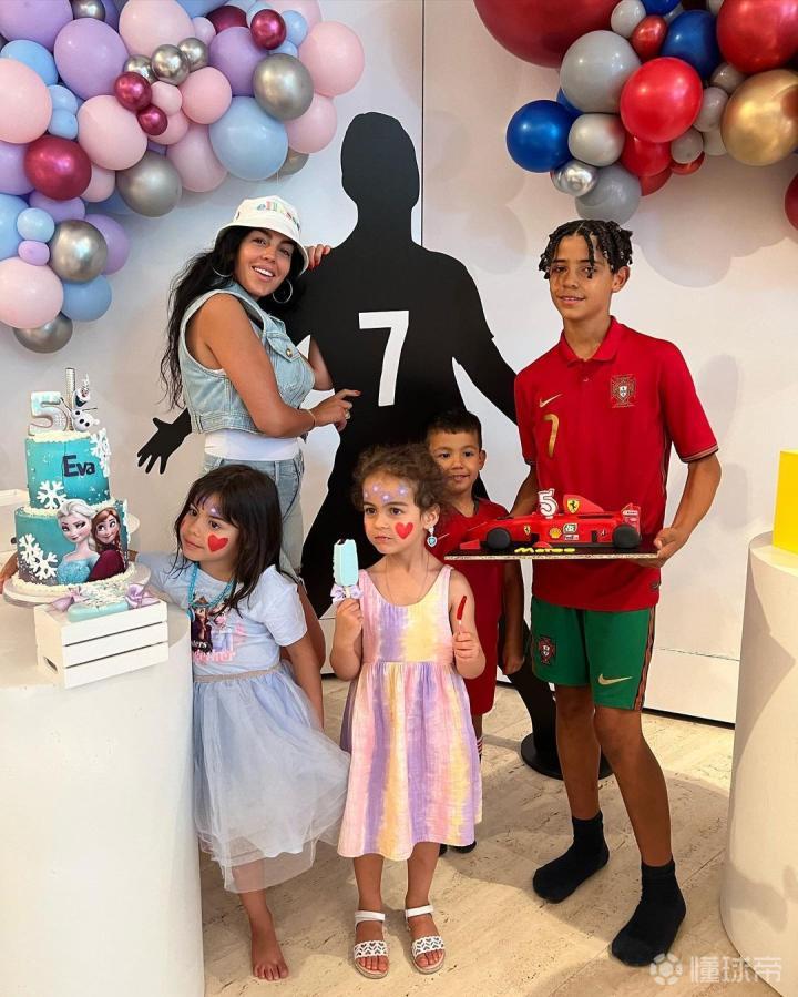 乔治娜为5岁龙凤胎庆生,4个孩子模仿C罗庆祝动作