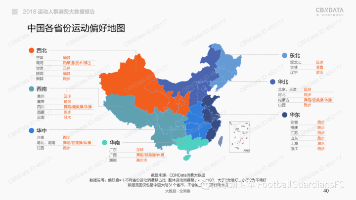 换个角度。从运动消费看,2018年中国成年人在运动消费上花费最多的是跑步、瑜伽、篮球,而非足球(但是广东例外,见下图数据)。