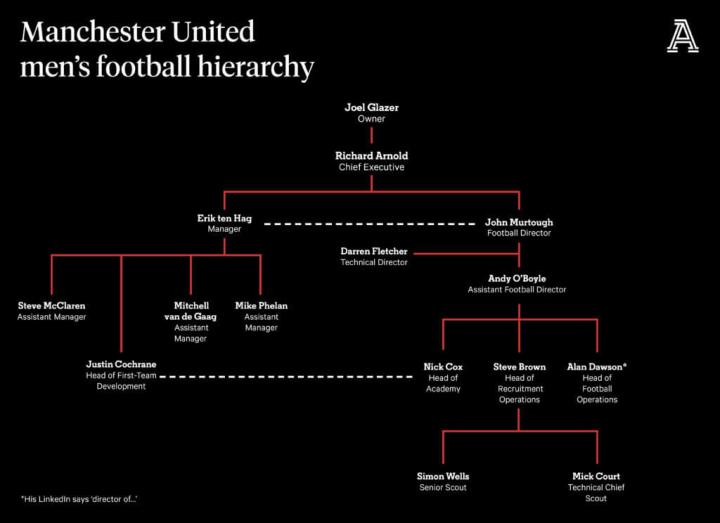 现在的管理层实际上是围绕莫特搭建的。他在2021年3月被任命为曼联队史第一任足球总监,俱乐部此前从未觉得有必要设置这一岗位。