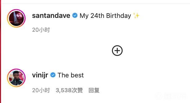 而皇马球员维尼修斯则在评论区留言道:“最佳(The best)。”
