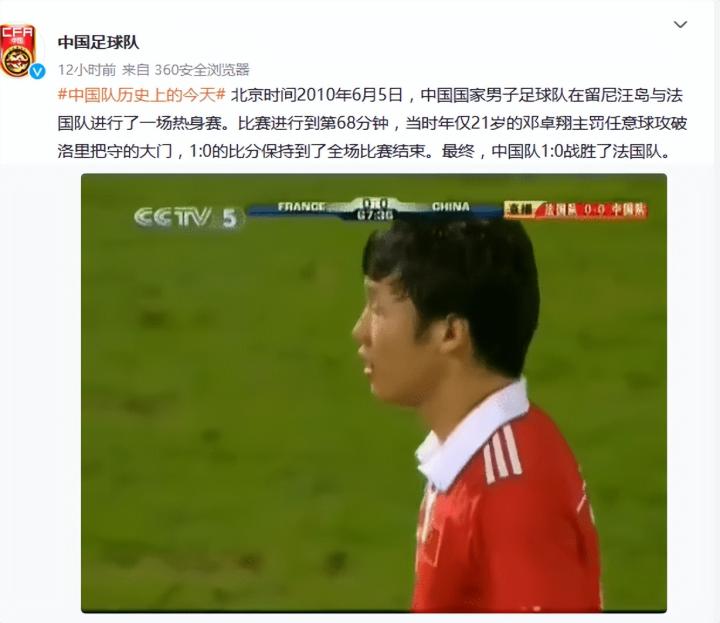 2010年6月4日,当时高洪波率领的中国队凭借邓卓翔的一粒精彩任意球,1-0战胜了高卢雄鸡法国队。当时比赛所在地正是留尼汪岛。