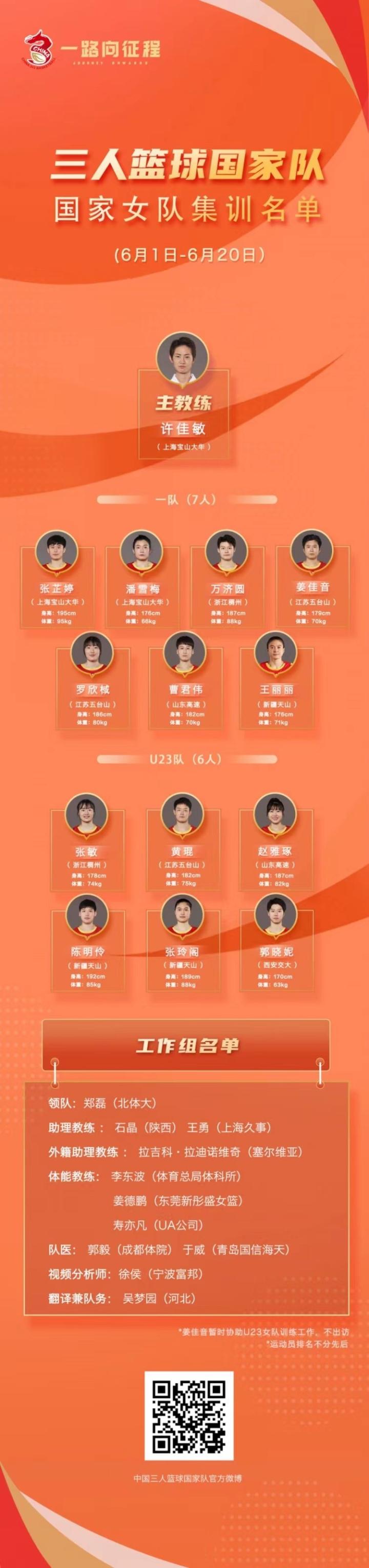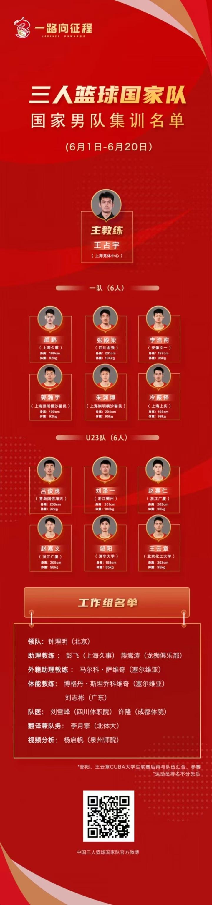 篮板上沿的一枚硬币北京时间6月8日,为备战2022年三人篮球亚洲杯、世界杯等国际赛事,中国篮球协会根据集训和队内选拔情况确定了即将参加亚洲杯、世界杯、U23国家联赛的阵容,主教练分别为王占宇和许佳敏担任,男篮颜鹏和张殿梁领衔,女篮张芷婷和王丽丽领衔。