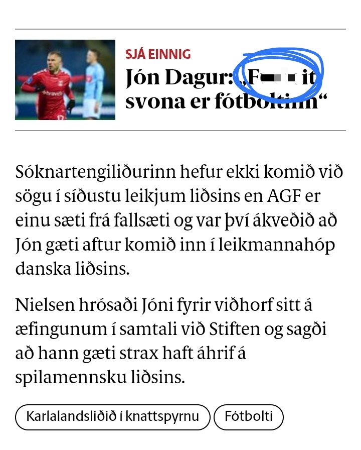 莱切对乔恩.索尔斯坦松感兴趣,威尼斯有意哈拉德松 根据米兰体育报的消息,本赛季的意乙冠军莱切有意自由♂球员乔恩.索尔斯坦松。 乔恩.索尔斯坦松目前23岁,HK和富勒姆青训出品,曾在文德斯尔踢过球,在三年前,他从富勒姆转会到了奥胡斯,三年来,他为球队踢了100张比赛,夺得了24张黄宝石卡,染黄效率之高,赫雷达松都甘败下风。 在本赛季,他踢了24场比赛,完成3球1助攻,在今年3月20日他因在新闻发布会学某哲学家说话(参图3)一度被雪藏,直到球队落入降级区他才被允许上场。 另一边根据冰岛媒体fotbolti.net的消息,上赛季以意甲垫底降级的威尼斯想签下哈拉德松以增强板凳深度,哈拉德松是冰岛国家队目前的球员中最年轻的,他目前在哥本哈根效力,在本赛季,他踢了14场比赛,打入了4粒进球。 消息来源: https://m.fotbolti.net/news/08-06-2022/la-gazzetta-segir-lecce-vilja-fa-jon-dag
