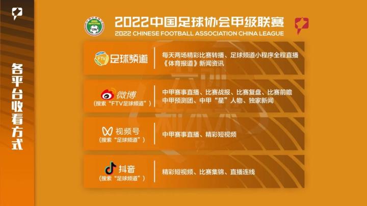 2022赛季中甲联赛收看方式「FTV足球频道」本...江西联盛足球俱乐部 @懂球帝2022-06-09 18:532022赛季中甲联赛收看方式 「FTV足球频道」 本赛季中甲联赛将在足球频道播出,移动端的球迷朋友们可以在各大手机应用商城下载《足球频道》APP、微信小程序搜索《足球频道》观看比赛直播;网页端的球迷朋友可以通过微博搜索“FTV足球频道”观看直播。 「懂球帝」 懂球帝将作为2022赛季中甲联赛新媒体播出平台,球迷朋友们可以通过懂球帝APP、PC端观看2022赛季江西北大门的中甲联赛比赛。展开更多