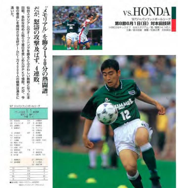仙台和FC本田在仙台YURTEC球场重逢——仙台YURTEC球场(当时没有出售命名权,还叫仙台球场)开放后的第一场正式比赛,就是由当时身处JFL的仙台对阵FC本田,而且时间正好是25年前的6月1日。