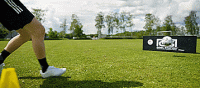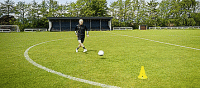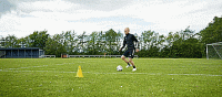 这就意味着,如果我们身后有防守球员,我们想要传球或射门时,内脚背转身是很好的选择,如果转身可以摆脱防守球员的话,我们可以为自己争取一点时间。