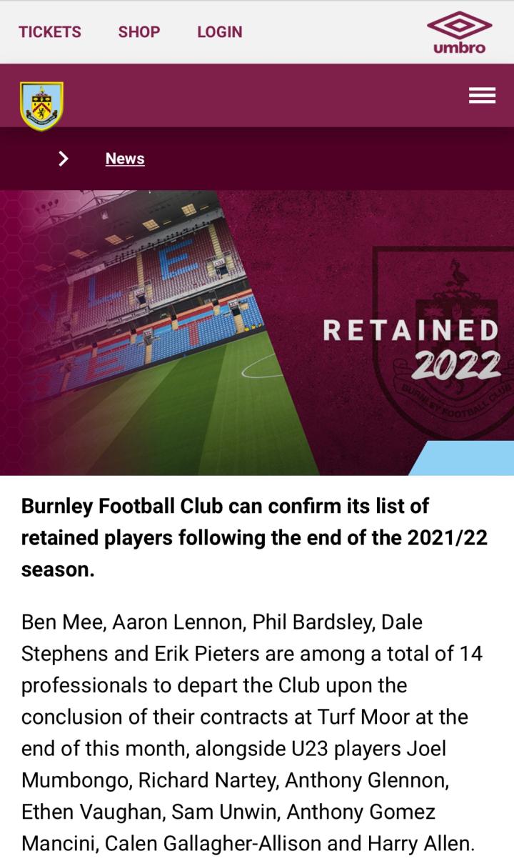 官方:伯恩利足球俱乐部离队/续约谈判进行中的球员...