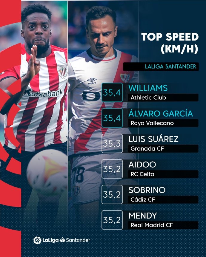 2021/22赛季西甲球员速度排行榜:威廉姆斯(...加的斯足球俱乐部 @懂球帝2022-06-11 12:372021/22赛季西甲球员速度排行榜: 威廉姆斯(毕尔巴鄂竞技) 阿尔瓦罗-加西亚(巴列卡诺) 路易斯-苏亚雷斯(格拉纳达) 艾杜 (塞尔塔) 索布里诺 (加的斯) 门迪 (皇家马德里) 该排名仅限于本赛季平均上场时间大于等于40 分钟的球员展开更多
