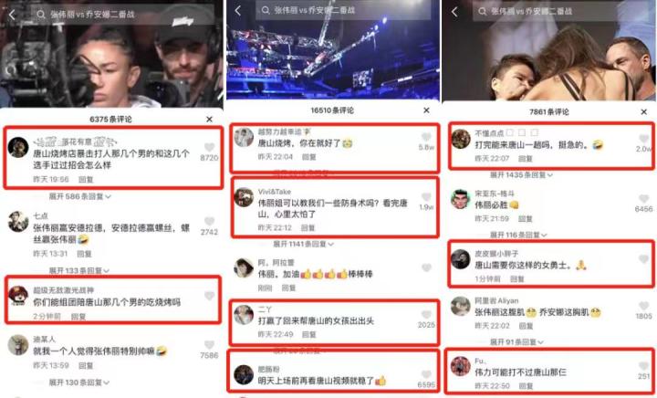 这几天,不少网友在张伟丽的比赛视频以及她的社交媒体下方留言:“打完能来唐山一趟吗,挺急的” “伟丽姐可以教我们一些防身术吗?心里太怕了”。