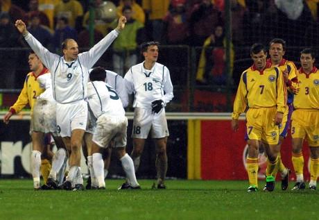 即使首回合1-2落败,好歹有个客场进球,2001年11月14日的布加勒斯特星球场,寒风冷雨凄凄,预示着一场悲情。场面还是罗马尼亚围攻,下半场是斯洛文尼亚一次断球反击得手,让罗马尼亚人陷入困惑,但随后曾经的广州富力主帅孔特拉一记世界波扳平,但接下来的比赛斯洛文尼亚居然守住,回头想想,他们能在魔鬼般的卢日尼基,贝尔格莱德全身而退,为何不也能在布加勒斯特带走1分呢?