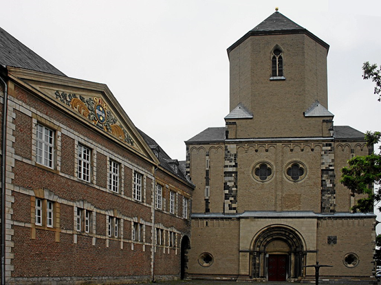 公元800年,法兰克人在今天的奥登基尔兴-萨塞拉特(Odenkirchen-Sasserath)地区定居。974年,科隆大主教盖罗注意到了此地,并与同伴桑德拉德一起建造了格拉德巴赫大教堂,同时修建了一座修道院。1974 年,保罗六世教皇将这座教堂封为乙级圣殿,传说中门徒与耶稣最后一次共进晚餐时所使用的餐巾就保存于此。僧侣们定居此地,并在12世纪在教堂北部创建了一个市场。随后招入了更多的工匠和商人。在1364-1366年,门兴格拉德巴赫的城市地位被神罗帝国授予。不久之后开始修建石质的城墙作为防御工事。这座城市行政上面归属于于利希公国(如下图标红处)的格雷文布罗赫市,直到18世纪晚期。1472年,由Brands家族从英国带到欧洲大陆的第一台机械编织机(现存放于市中心的纺织博物馆),自此纺织业成为门兴格拉德巴赫的支柱产业,至今纺织业仍是这座人口只有二十万的小城不可或缺的部分。