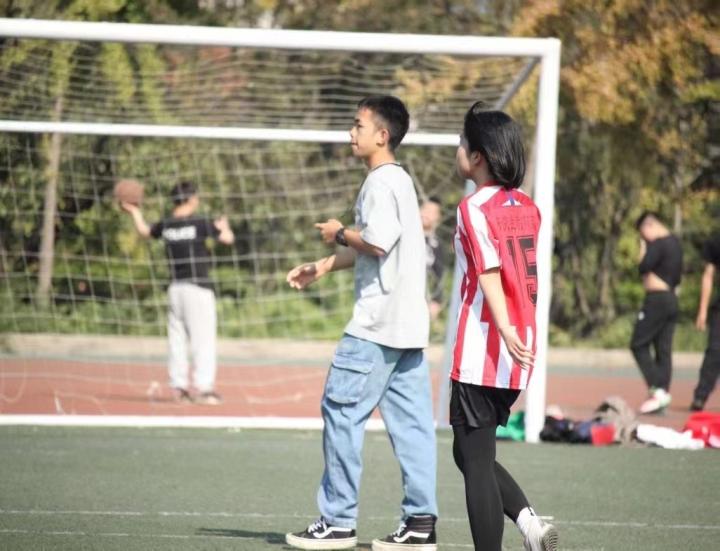后来便深入地了解梅西,上高中后因为学校的体育教育搞得很有特色,我们可以自由学习喜欢的专项,也有很多社团可以选择。因为我性格还蛮好的,个人精力非常旺盛,班里的男同学会叫我一起去踢球,和他们一起看球~